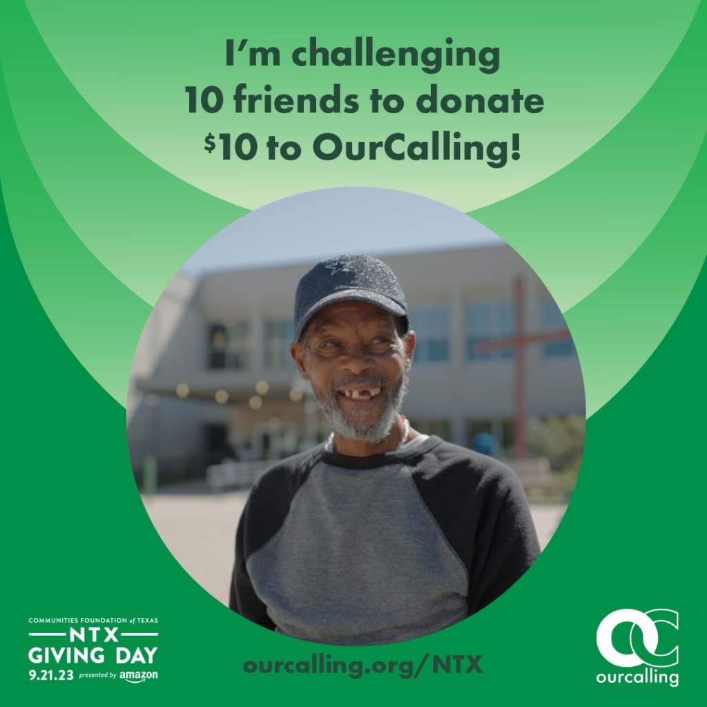 I am challenging 10 friends to donate $10 each to help us transform lives by giving to OurCalling on NTX Giving Day!