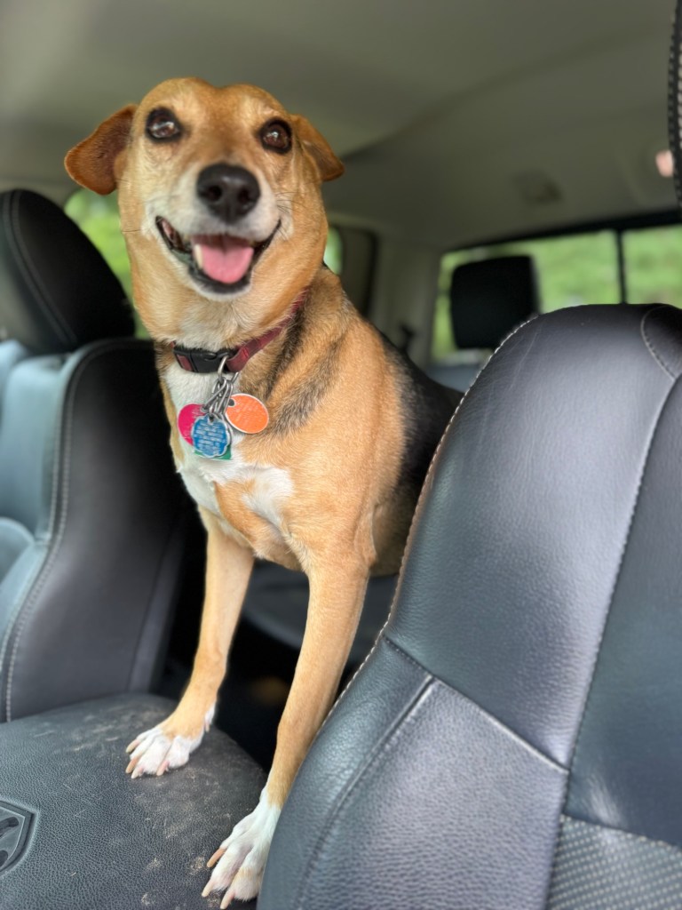 My mom has a rescue dog named April who loves nothing more than hopping in the truck and going for a ride with me.